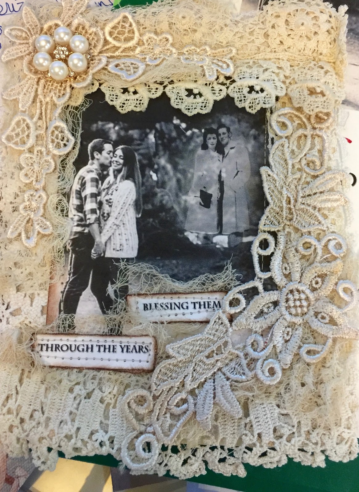 Last page is a large pocket, created with both new (hand dyed) and vintage laces.